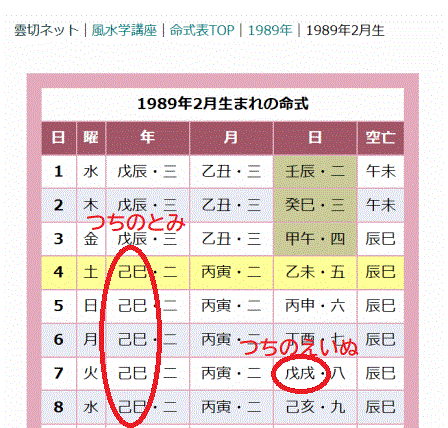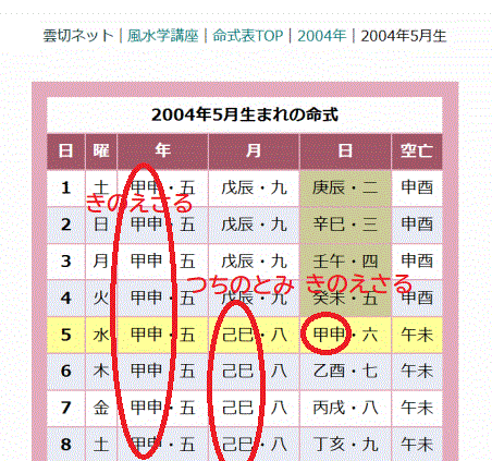 十干と十二支の組み合わせで、六十干支が出来ています。六十干支は年単位、月単位、日単位でずっと循環します。