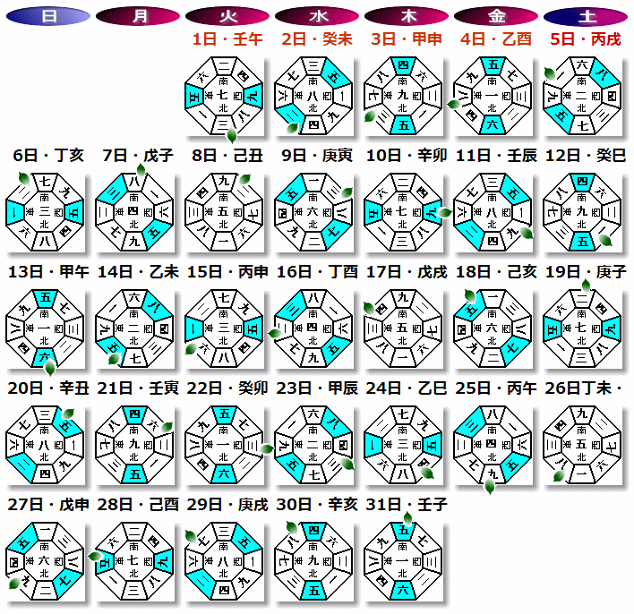 青=五黄殺、暗剣殺、緑=破 生は生気、天は天道 ![]() |
