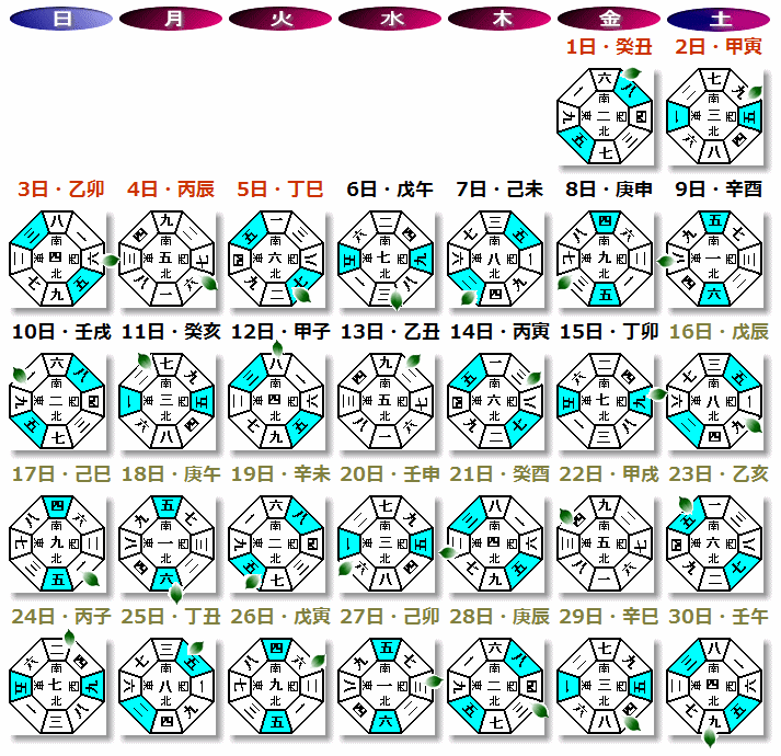 青=五黄殺、暗剣殺、緑=破 生は生気、天は天道 ![]() |