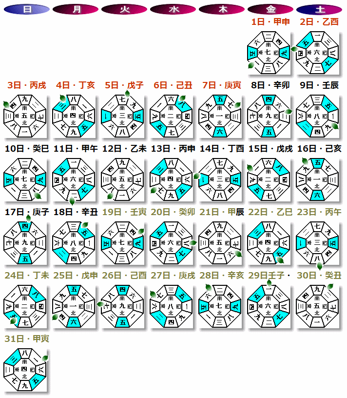 青=五黄殺、暗剣殺、緑=破 生は生気、天は天道 ![]() |