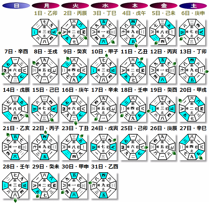 青=五黄殺、暗剣殺、緑=破 生は生気、天は天道 ![]() |