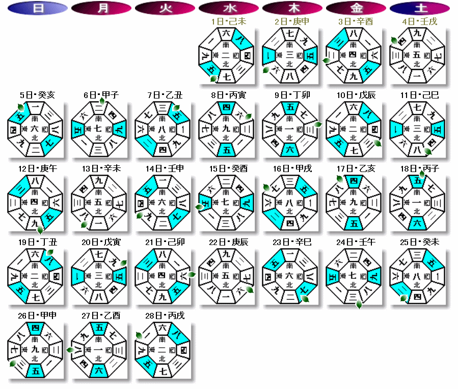 青=五黄殺、暗剣殺、緑=破 (吉意を増し、凶意を軽減)